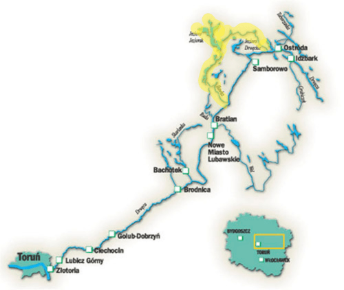 - 0,0 – ujście Iławki do Drwęcy